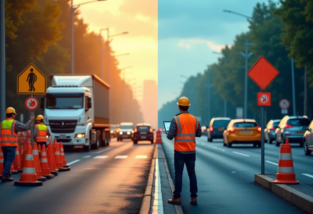 Un chantier avec une signalisation claire et un balisage précis assure une circulation fluide et sûre. À l’inverse, un chantier mal signalisé, avec des panneaux illisibles et un balisage incomplet, provoque des ralentissements et augmente les risques d’accidents. La différence entre une bonne et une mauvaise signalisation peut se traduire par une réduction de 40% du nombre d’accidents. Par exemple, un chantier autoroutier bien signalisé verra une réduction significative des accidents, contrairement à un chantier mal signalé en zone urbaine, où le nombre d’accidents pourrait augmenter de 25%. L’ajout de panneaux lumineux à LED a démontré une amélioration de la visibilité de 60% par rapport aux panneaux classiques.
